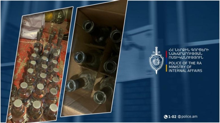 Համայնքային ոստիկանության Վաղարշապատի բաժնում հունվարի 24-ին օպերատիվ տեղեկություն էր ստացվել, որ Էջմիածնի 64-ամյա բնակիչը պատրաստում և իրացնում է կեղծ ալկոհոլային խմիչք: