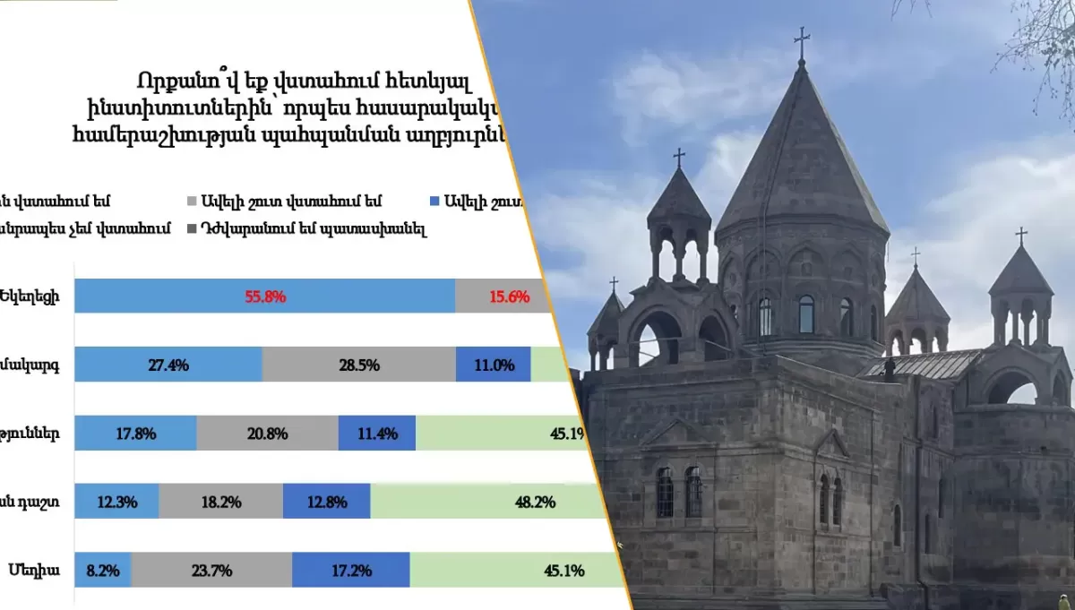 Մեկ այլ հարցի՝ «Որքանո ՞վ եք վստահում հետևյալ ինստիտուտներին՝ որպես հասարակական համերաշխության պահպանման աղբյուրների», տրվել են հետևյալ պատասխանները․