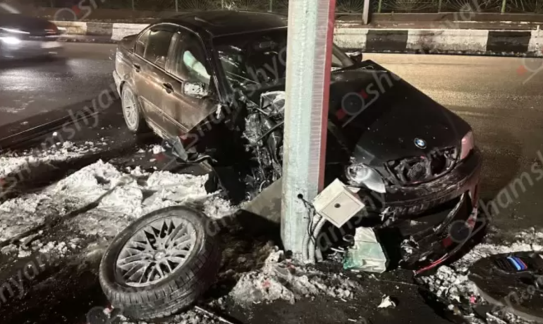 Բախման հետևանքով «BMW»-ն դուրս է եկել երթևեկելի գոտուց և բախվել երկաթե էլեկտրասյանը։
