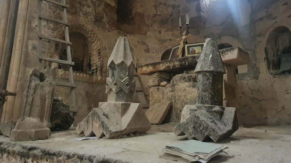 Տարածված լուսանկարներում երևում է, որ անհետացել են բեմի վրա դրված եկեղեցու մանրակերտները, Սուրբ սեղանին հենած խաչքարը։ Ջարդել են գեղաքանդակ խաչքարի ստորին հատվածը, որն ընկած է գետնին։ Աջակողմյա որմնախորշի մեջ տեղադրված քանդակը երեսնիվայր ընկած է։