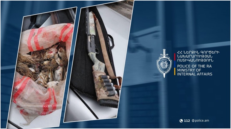 Արմավիրի մարզի պարեկները մարտի 7-ին ծառայություն իրականացնելիս փաստաթղթերը ստուգելու նպատակով կանգնեցրել են «Մերսդես» մակնիշի ավտոմեքենան և ակնհայտ տեսանելի հատվածում նկատել մեկփողանի որսորդական հրացան և որսած 75 տափաստանային արտույտ։