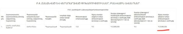 Հատկանշական է, որ նա հայտարարագրել է 23,985,000 դրամի փոխառություն «ԱԿԲԱ բանկից», իսկ տարվա ընթացքում ստացել է նաև 20,387,250 դրամ վարկ։