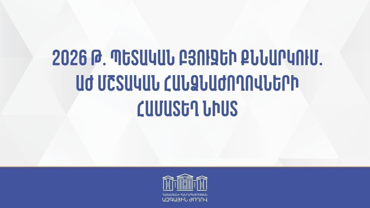2026թ. պետբյուջեի մասին օրենքի նախագիծը կքննարկվի ԱԺ լիագումար նիստում: