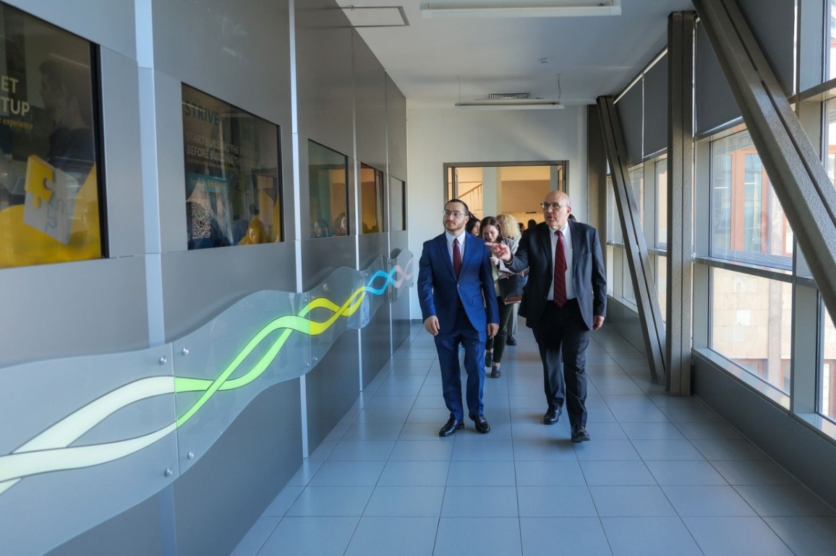 Համալսարանի նախագահ դոկտոր Բրյուս Պողոսյանի ուղեկցությամբ նախարարը շրջայց է կատարել բուհում, ծանոթացել կրթական և հետազոտական ծրագրերին, ինչպես նաև հաստատության զարգացման առաջնահերթություններին։