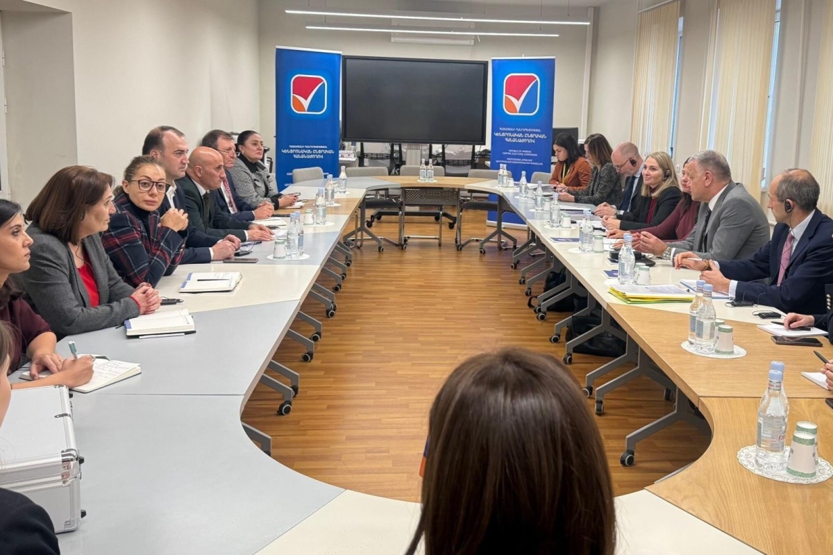 Հյուրերը ԱԺ 2026 թվականի հերթական ընտրություններին ընդառաջ, հետաքրքրվել են ԿԸՀ նյութատեխնիկական հագեցվածության և պատրաստվածության մասին՝ փորձելով հասկանալ կառույցի կարիքները։ ԿԸՀ նախագահ Վահագն Հովակիմյանը ողջունել է հյուրերին և վստահեցրել, որ ընտրական համակարգը մշտապես պատրաստվում է համապետական ընտրություններին։ Հյուրերի քննարկման առանցքում էր նաև ընտրություններին ընդառաջ հնարավոր հիբրիդային սպառնալիքները և դրանց դիմակայելու համար ԿԸՀ գործիքակազմը։