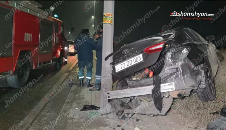 Բախման հետևանքով «Toyota»-ն դուրս է եկել երթևեկելի գոտուց, հայտնվել հետիոտնի համար նախատեսված մայթին՝ բախվելով հողաթմբին: