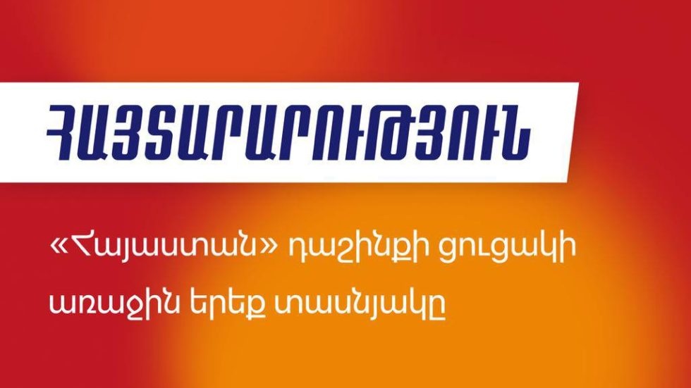 ՀՅԴ 29-րդ արտահերթ Գերագույն ժողովի եզրափակիչ նիստում և «Առաջ» կուսակցության համագումարում հաստատվել է «Հայաստան» կուսակցությունների դաշինքի նախընտրական ցանկի առաջին երեք տասնյակը: Պատգամավորի թեկնածուների անունների հաջորդականությունը հետևյալն է՝