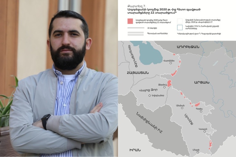 Քարտեզի վրա մանուշակագույնով նշված են այն տարածքները, որոնք Ադրբեջանը գրավել է Հայաստանի Հանրապետության ինքնիշխան տարածքից՝ առնվազն ավելի քան 300 քառակուսի կիլոմետր։ Այս մասին գրել է թյուրքագետ Վարուժան Գեղամյանը: