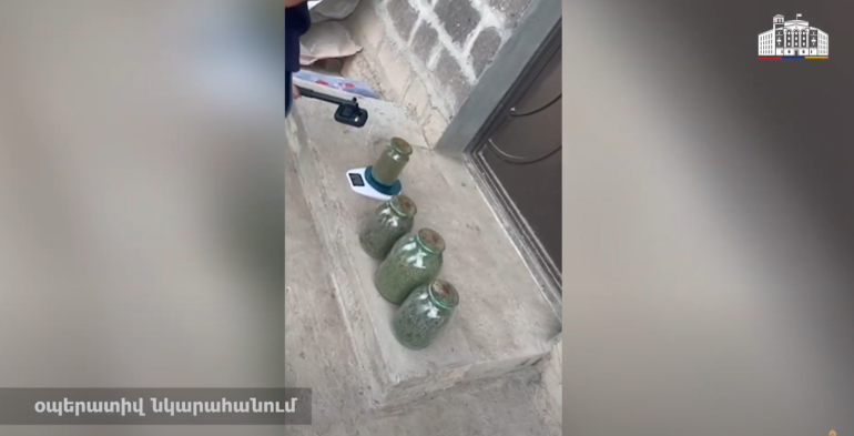 Արմավիրի մարզային քննչական վարչությունում նախաձեռնված քրեական վարույթի շրջանակներում հոկտեմբերի 1-ին զննություն կատարվեց 71-ամյա տղամարդու հողամասում: Հայտնաբերվեց հողի մեջ թաղած երկուլիտրանոց ապակե երկու տարա՝ ամբողջությամբ լցված ավելի քան 850 և 770 գրամ կանեփանման զանգվածներով: Եվս երկու ապակե տարա հայտնաբերվեց պարսպի տակ թաղած դույլի մեջ` 3 և 1 լիտրանոց: Դրանք էլ լցված էին համապատասխանաբար` մոտ մեկ կիլոգրամ 400 գրամ և մոտ 560 գրամ կանեփանման չոր զանգվածներով։