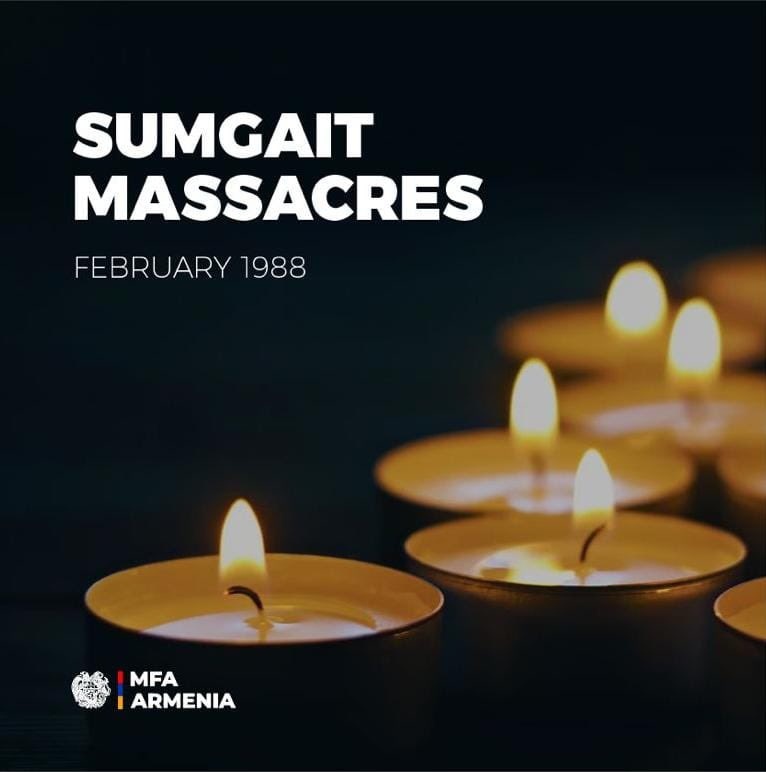 «1988 թվականին Ադրբեջանական ԽՍՀ ուժերի կողմից կազմակերպված Սումգայիթի կոտորածների զոհերի հիշատակի այս օրերին մենք հարգանքի տուրք ենք մատուցում սպանված հարյուրավոր հայերի հիշատակին։ Մոտ կես միլիոն մարդ բռնի տեղահանվել է։