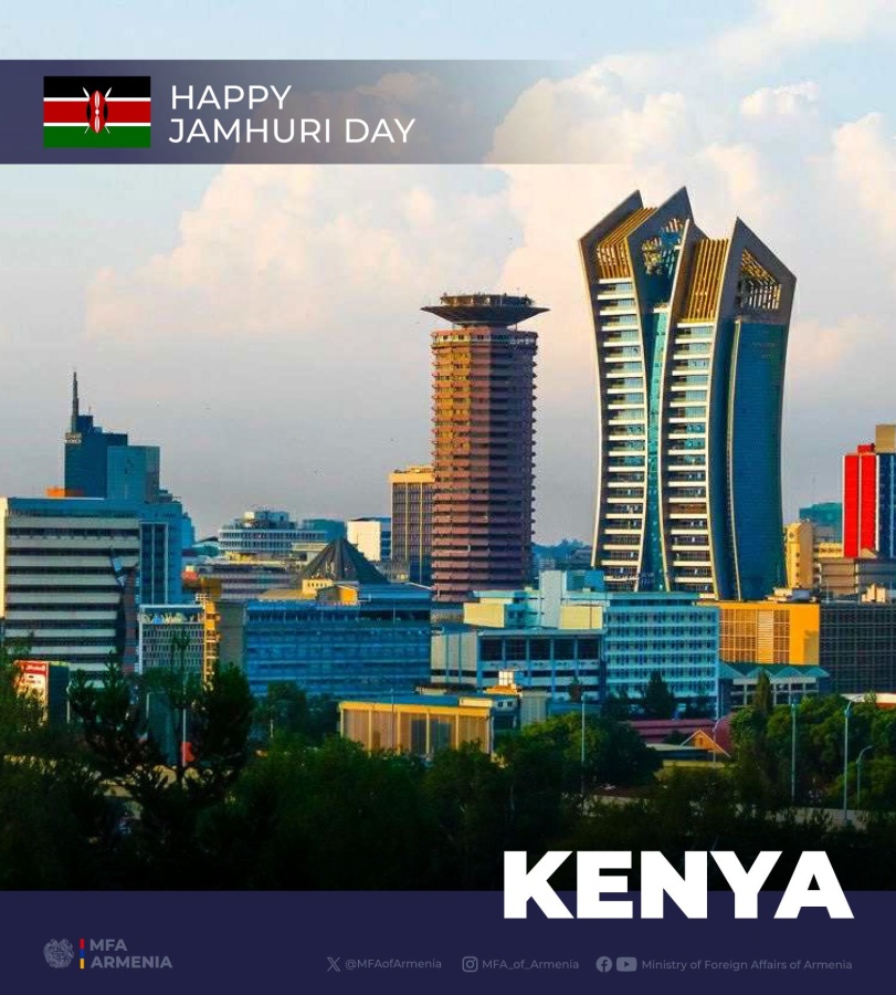 Հայաստանի Հանրապետության արտաքին գործերի նախարարությունը շնորհավորական ուղերձ է հղել Քենիային՝ Անկախության տոնի կապակցությամբ։