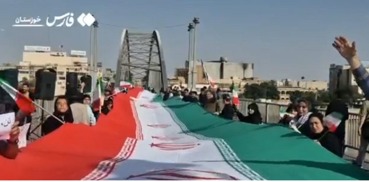 Ալիքը հրապարակել է Ահվազի կամրջի վրա ազգային դրոշը բռնած իրանցիների հավաքվելու կադրեր։