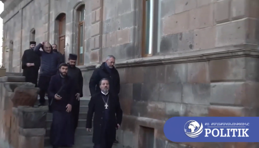 Կարգալույծ հռչակված քահանաները, որոնք հավաքվել էին Էջմիածնի Սուրբ Գայանե եկեղեցու հարակից տարածքում, այժմ ոստիկանների ուղեկցությամբ այդտեղից դուրս են եկել և շարժվում են դեպի Մայր աթոռ։