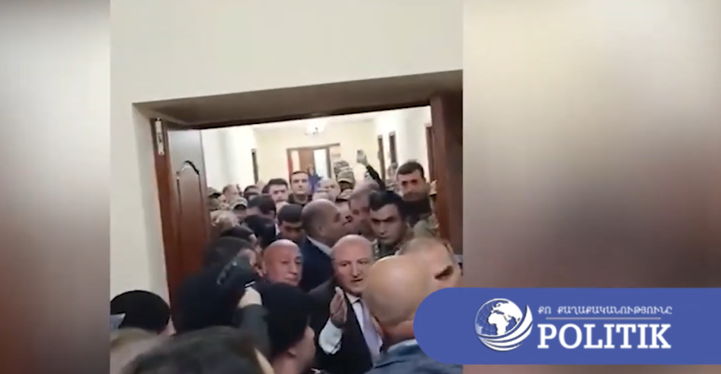 Նա ուժայինների ուղեկցությամբ դուրս եկավ իր աշխատասենյակից։ Քաղաքապետարանի շենքում բազմաթիվ աշխատողներ են հավաքված, որոնք չէին ցանկանում թույլ տալ, որ նրան ձերբակալեն։