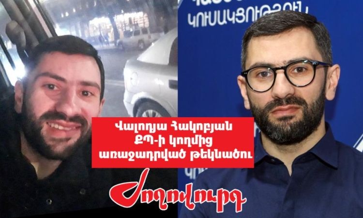 «Ժողովուրդ» օրաթերթը գրում է. ««Սիրելի ընկերներ, առաջադրվել եմ 2026 թվականի խորհրդարանական ընտրություններում «Քաղաքացիական պայմանագիր» կուսակցության համամասնական ցուցակում ընդգրկվելու համար։ Ընտրություններում ձեզ խնդրելու, հորդորելու եւ առաջարկելու եմ ընտրել ՔՊ-ին»,- երեկ այս մասին հայտնեց Վալոդյա Հակոբյան անունով մի երիտասարդ: Կմտածեք՝ ով է նա, որ հայտարարել է առաջադրվելու մասին: Նա ՔՊ քարոզիչներից է, օրումեջ հանրայինի եթերում կռիվ է անում, բղավում, որ փորձի նմանվել Նիկոլ Փաշինյանի «ճղճղան կերպարին»: