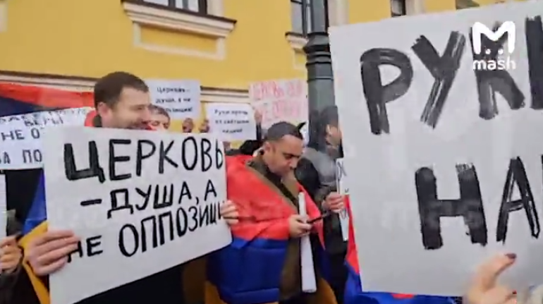 Ցուցարարները պահանջում են ազատ արձակել Հայ Առաքելական Եկեղեցու ձերբակալված արքեպիսկոպոսներ Բագրատ Գալստանյանին և Միքայել Աջապահյանին։ Նշենք, որ Փաշինյանն աշխատանքային այցով գտնվում է Մոսկվայում: