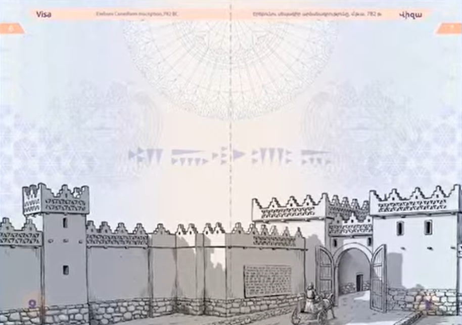 Շարունակելով ներկայացնել փաստաթղթի տարբեր էջերում զետեղված պատկերները՝ նշվել է, որ այն սկսվում է հայի ծագումնաբանությամբ՝ Հայկ Նահապետի պատկերով և Գեղամա լեռներում և Ուխտասարում հայտնաբերված ժայռապատկերներով, որոնք բավական հին պատմություն ունեն: Ներկայացված է նաև պատմության հաջորդ կարևոր հանգրվանը՝ Երևանի հիմնադրման սեպագիր արձանագրությունը, որը հայի ինքնության և պատմության շատ կարևոր մասն է: Ընդգծվել է, որ Էրեբունի ամրոցի պատկերը վերականգնված է գիտնականների կողմից: Հաջորդիվ՝ ներկայացված են Արտաշեսյան ժամանակաշրջանի սահմանաքարերը, որոնց վրա արամեերեն արձանագրություններ են: Սահմանաքարի տեղադրման ձևը և դիրքը նույնպես գիտնականների հետ խորհրդակցությունների արդյունքում է ձևավորվել, տվյալ ժամանակաշրջանի կենցաղավարությունը և գյուղատնտեսությունը պատկերող վիզուալիզացիա են: Ընդգծվել է, որ սահմանաքարի ընտրությունը պատահական չէ, այն պետական և իրավական շատ կարևոր գործիք է հանդիսացել նույնիսկ այն ժամանակահատվածում, որովհետև ցույց է տվել պետության գոյությունը, պետական կառավարման էությունը և նաև հողային բարեփոխումները, որոնք տեղի են ունեցել այդ ժամանակահատվածում: