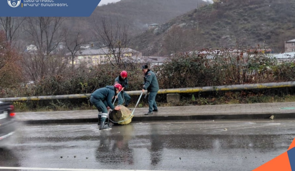 Փրկարարները ճանապարհի երթևեկելի հատվածից հեռացրել են թափված քարերը։