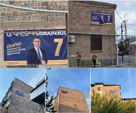Ի՞նչ պատկեր է Վաղարշապատում: Ամեն քայլափոխի ՔՊ-ին կամ ՔՊ-ն ներկայացնող անձանց չպատկանող բազմաբնակարան շենքերի և շինությունների վրա, որտեղ չկան վճարովի կամ անվճար առանձնացված վահանակներ, արգելված վայրերում փակցված են Վաղարշապատում Նիկոլ Փաշինյանի ներկայացուցիչ Արգիշտի Մեխակյանի քարոզչական պաստառները, որոնք, ըստ էության, վնասում են նաև բազմաբնակարան շենքերի արտաքին պատերը: