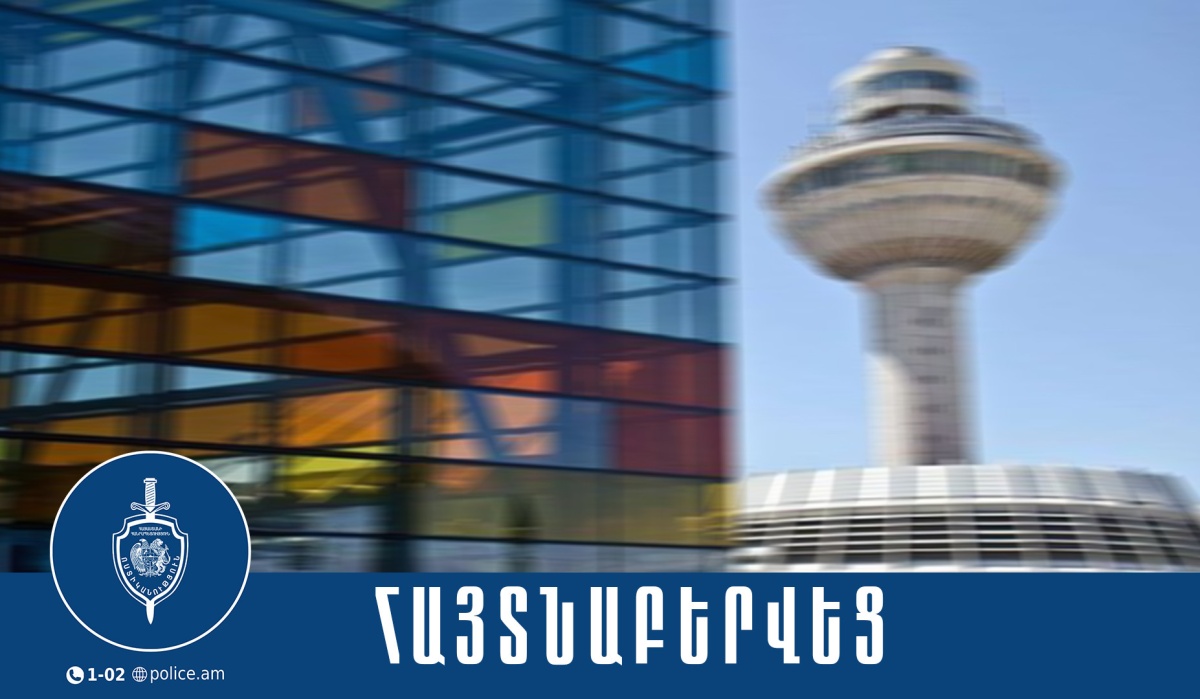 Քրեական ոստիկանության Երևան քաղաքի վարչության ծառայողները, իրացնելով Քրեական ոստիկանության Թմրամիջոցների ապօրինի շրջանառության դեմ պայքարի վարչության օպերատիվ տեղեկությունները, «Զվարթնոց» օդանավակայանի տարածքում հայտնաբերել, ձերբակալել և Համայնքային ոստիկանության «Զվարթնոց» օդանավակայանի բաժին են տարել մի օտարերկրյա քաղաքացու: