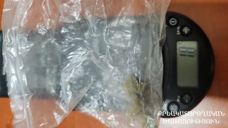 Խուզարկության արդյունքում կնոջ մոտից հայտնաբերվել է ընդհանուր 5,5 գրամ քաշով մարիխուանա տեսակի թմրամիջոցին նմանվող զանգված։