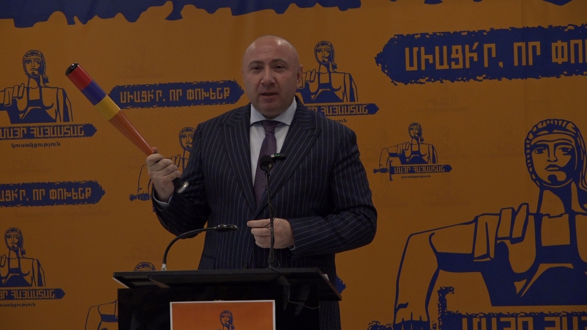«Մահակի վրա պատկերված է հայոց եռագույնը, պետք չի սրանից վախենալ, սա սիրո և հանդուրժողականության մահակ է։ Քաղաքականության մեջ, փոխաբերական իմաստով սա նաև կարգ ու կանոն հաստատելու գործիք է, քաղաքական դաշտը ապիկարներից մաքրելու գործիք է»,-նշեց նա։