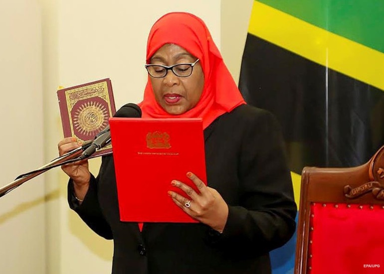 Սամիա Սուլուհուի երդմնակալությունը փակ է եղել հանրության համար և ուղեկցվել է անվտանգության խիստ միջոցառումներով: Նա ստացել է ձայների գրեթե 98 %-ը. նրա գլխավոր մրցակիցները կա՛մ բանտարկված են եղել, կա՛մ նրանց արգելվել է առաջադրել իրենց թեկնածությունը: