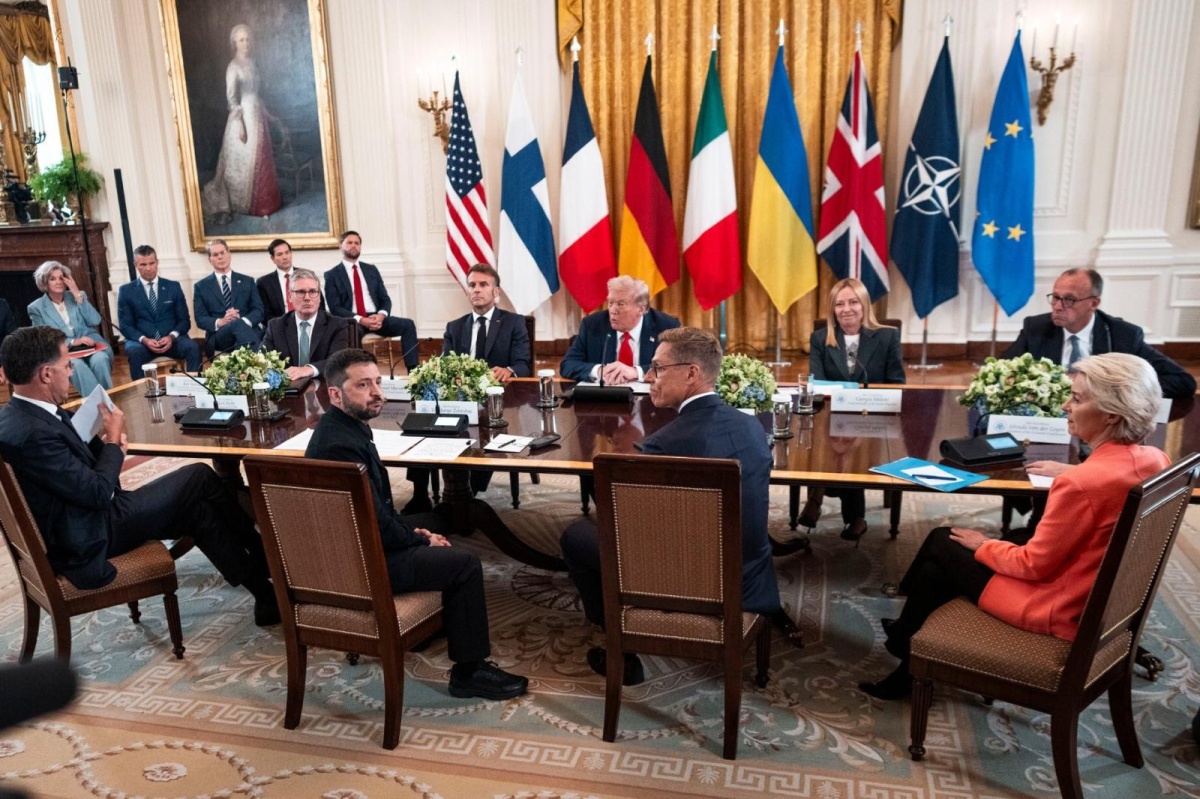 Օգոստոսի 18-ին Թրամփը Սպիտակ տանը բանակցություններ է վարել Ուկրաինայի նախագահ Վոլոդիմիր Զելենսկու հետ։ Երկկողմ հանդիպումից հետո նրանց միացել են եվրոպացի առաջնորդները՝ Մեծ Բրիտանիայի վարչապետ Քիր Սթարմերը, Ֆրանսիայի նախագահ Էմանուել Մակրոնը, Գերմանիայի կանցլեր Ֆրիդրիխ Մերցը, Ֆինլանդիայի նախագահ Ալեքսանդր Ստուբը և Իտալիայի վարչապետ Ջորջիա Մելոնին, ինչպես նաև ՆԱՏՕ-ի գլխավոր քարտուղար Մարկ Ռյուտեն և Եվրահանձնաժողովի նախագահ Ուրսուլա ֆոն դեր Լայենը։