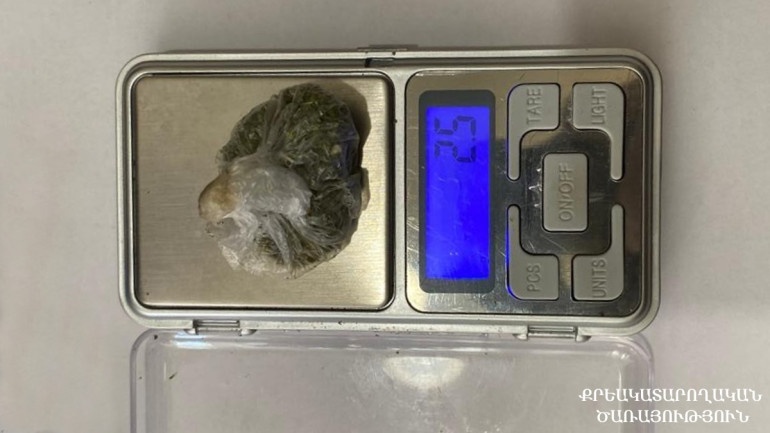 Պարզվել է, որ Ռ․Պ․-ն բերանում թաքցրել է փայլաթիթեղով փաթեթավորված, թմրամիջոցի նմանվող, 2,5 գրամ դեղնականաչավուն, բուսական զանգված։