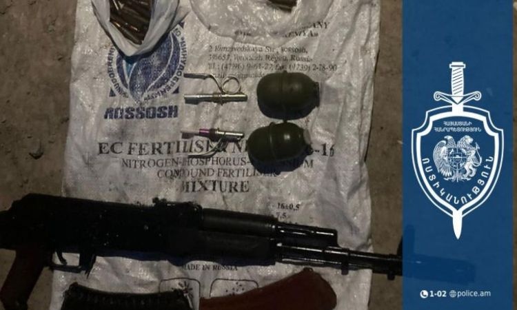 Մեկնած ոստիկանները նշված վայրում հայտնաբերել են ինքնաձիգ, տարբեր տրամաչափի 84 փամփուշտ և փամփշտատուփեր: