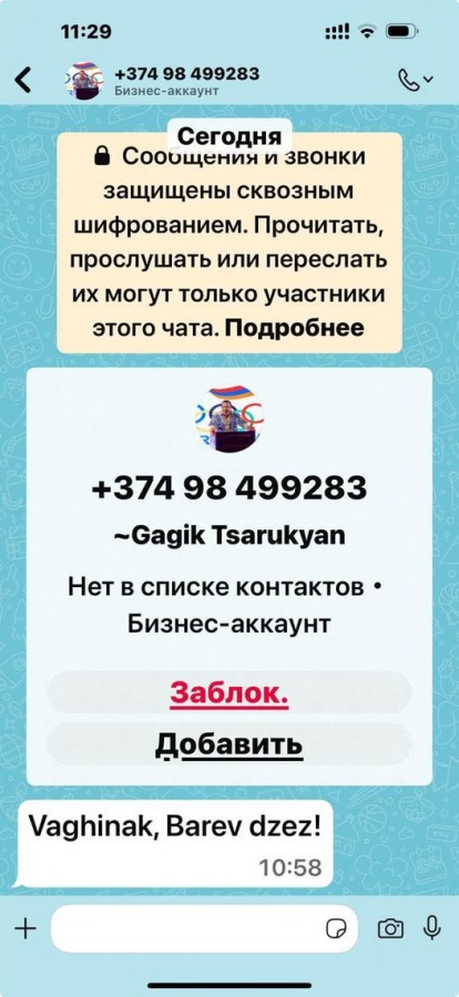 Օրերս Watsapp հավելվածում Գագիկ Ծառուկյանի անունով օգտահաշիվ է բացվել, որից հաղորդագրություններ են ուղարկվում տարբեր մարդկանց։ Պաշտոնապես տեղեկացնում եմ, որ այս օգտահաշիվը որևէ առնչություն չունի Գագիկ Ծառուկյանի հետ և հերթական խարդախության դրսևորում է։ Սա շատ ստոր ու էժան գործելաոճ է, որը խիստ դատապարտելի է։